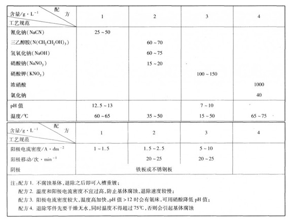 表4-1-7銅錫合金不合格鍍層的退除工藝